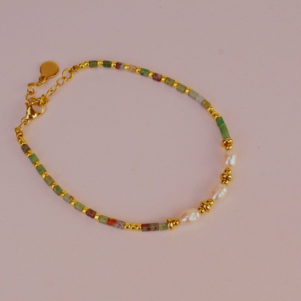 Pulsera Cuentas Verdes y Perlas