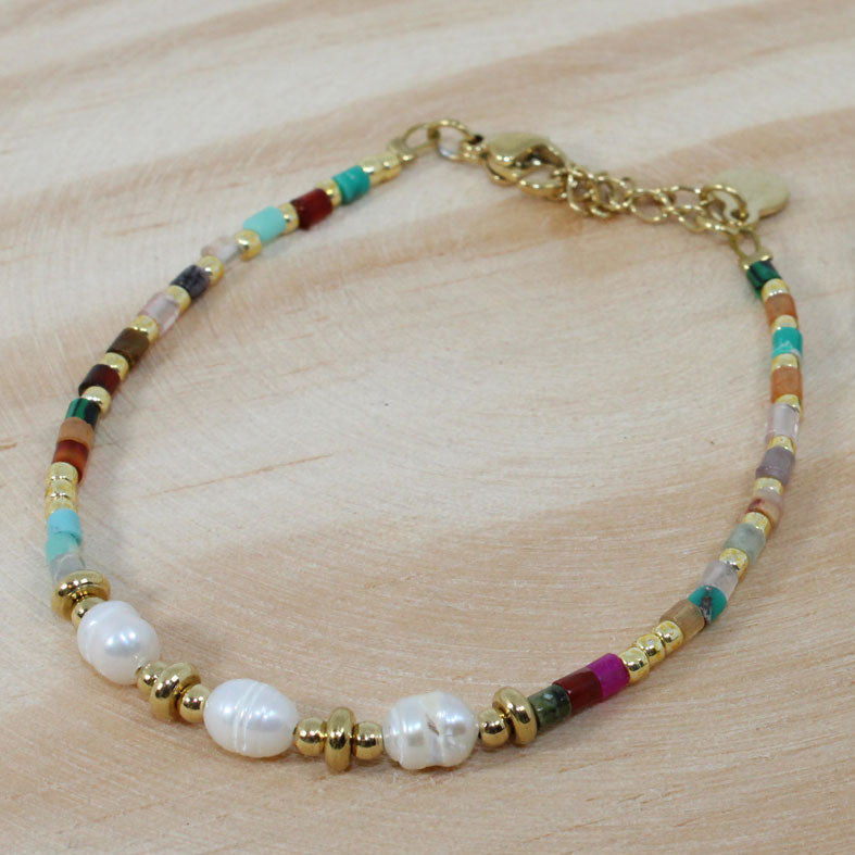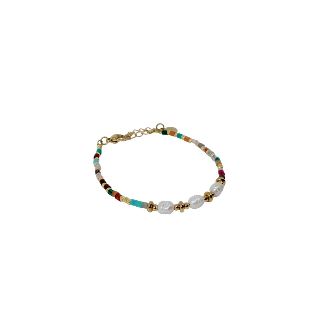 Pulsera Cuentas Multicolor y Perlas Dorada