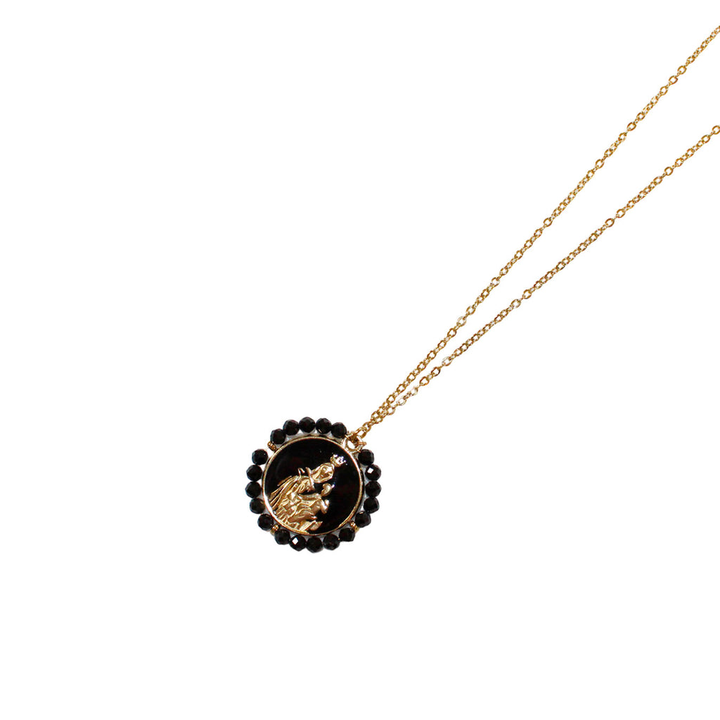 Collar Medalla Grande Virgen Cristales Negros Dorado