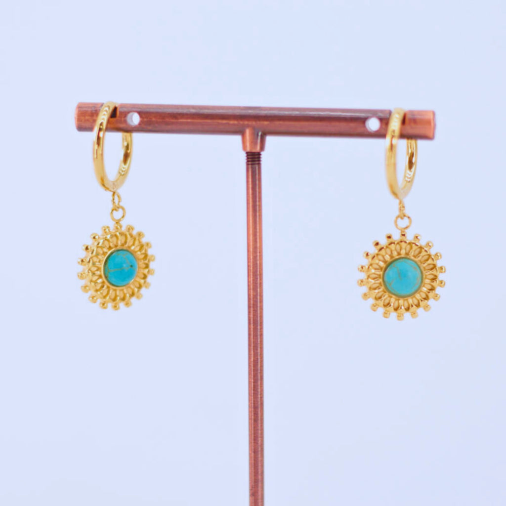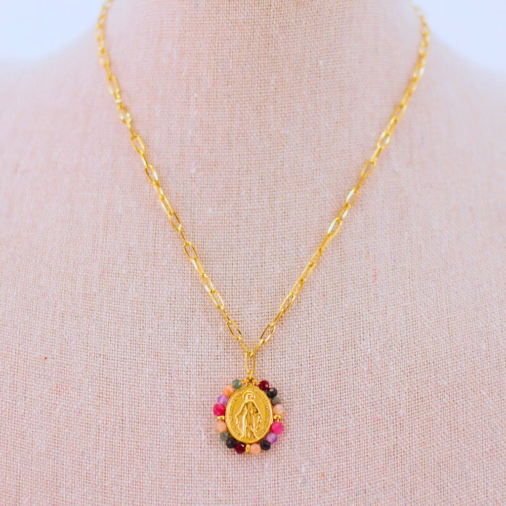 Collar Acero Mano Fátima Piedra Azul Dorado